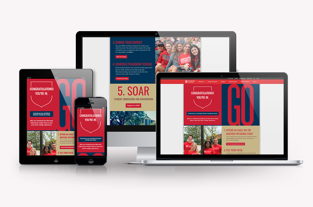 A demonstrated need for an easy-to-access online checklist for students to arrange financial aid, housing, and course registration before the start of their first term spurred the creation of specialized Next Steps landing pages for communications with admitted freshman and transfer students.